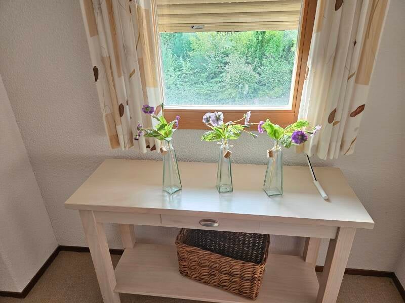 De woning is met zorg ingericht en biedt een warme, huiselijke sfeer. Dankzij de prettige indeling en het natuurlijke licht rondom de woonkamer is uw vakantiewoning ideaal voor gezinnen, stellen of vrienden die samen willen genieten van een ontspannen verblijf.