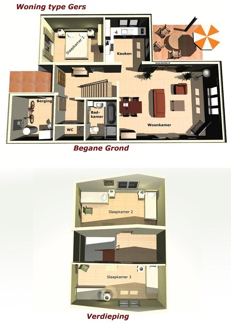 Volledig ingericht met 3 ruime slaapkamers, grote keuken en comfortabele woonkamer met houtkachel, luxe badkamer met toilet, 2de toilet en parkeerplaats op eigen terrein.